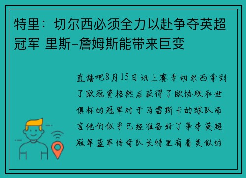 在足球的世界里,门兴格拉德巴赫与切尔西之间的对决总是引人注目。两支球队各自拥有璀璨的历史和深厚的球迷基础,比赛中的每一个瞬间都充满了激情与悬念。本文将对门兴对切尔西的精彩对决进行全方位分析,包括比赛前的战术布置、双方球员表现、关键时刻回放以及赛后的点评总结。通过录像回放,我们可以更深入地理解比赛的细节,以及如何在关键时刻把握机会,展现出顶级球队之间的较量魅力。这场比赛不仅仅是一场简单的胜负之争,更...